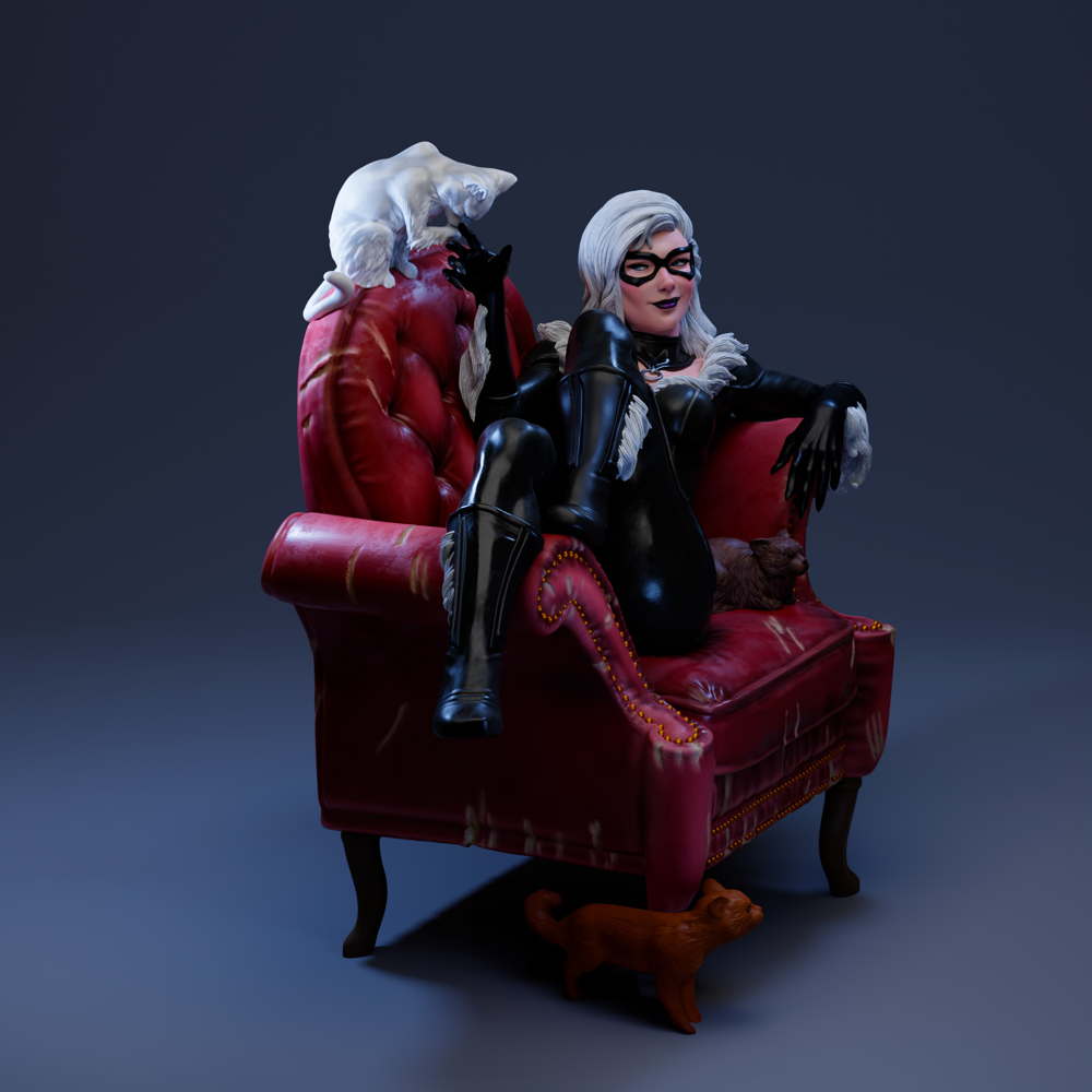 A sleek and dynamic Black Cat sculpture, capturing the agile, seductive, and cunning spirit of the famed Marvel antiheroine.