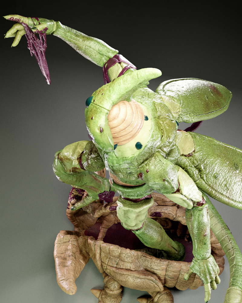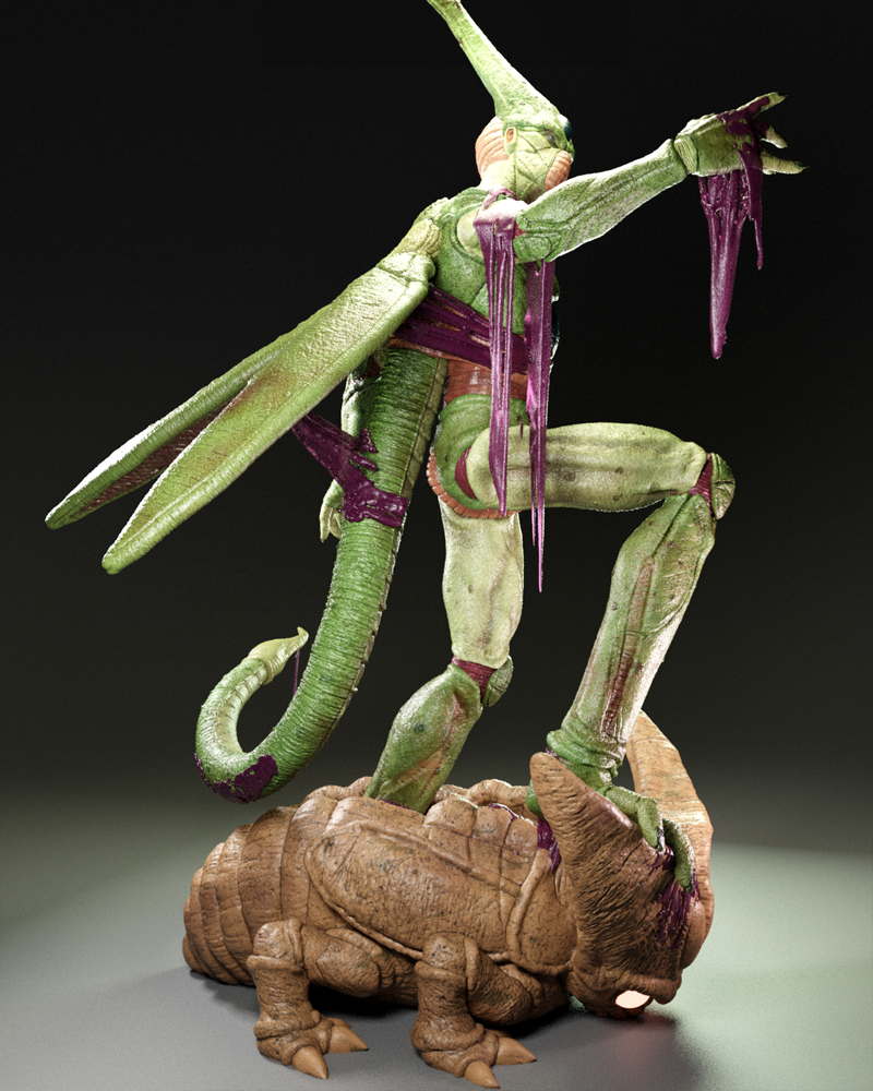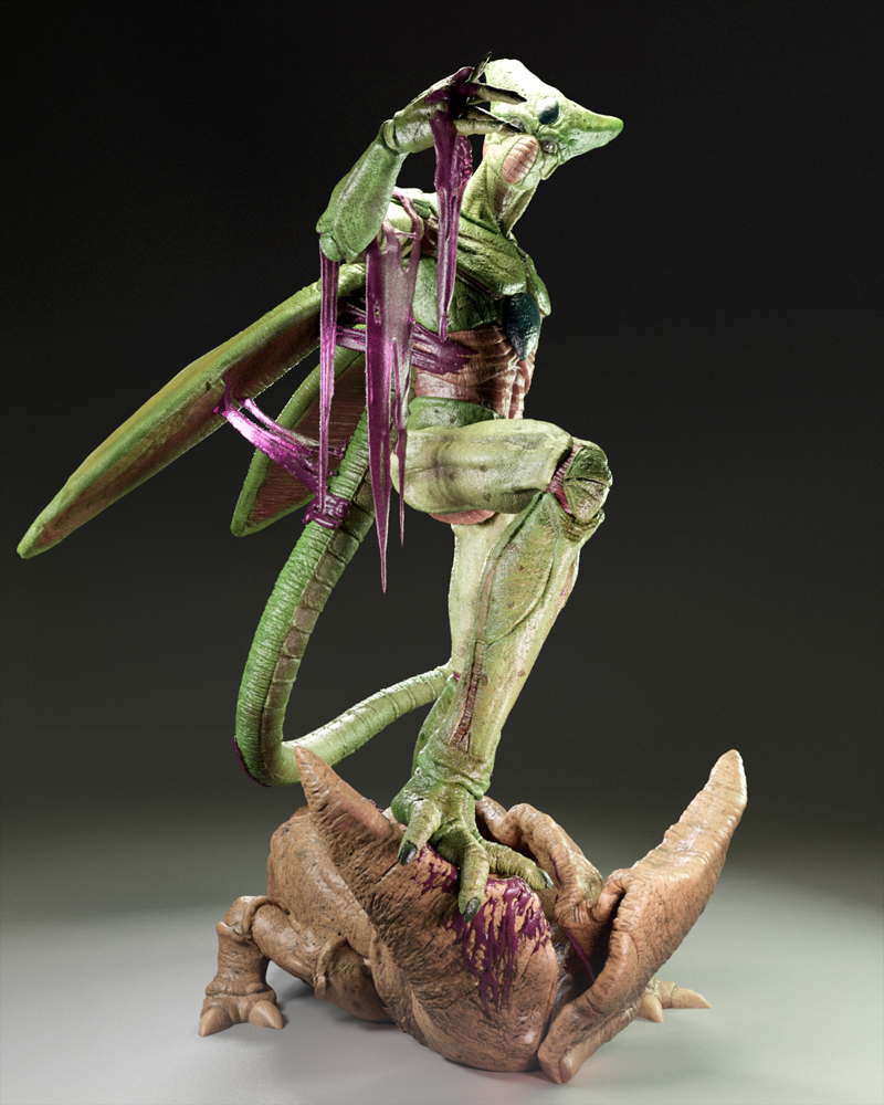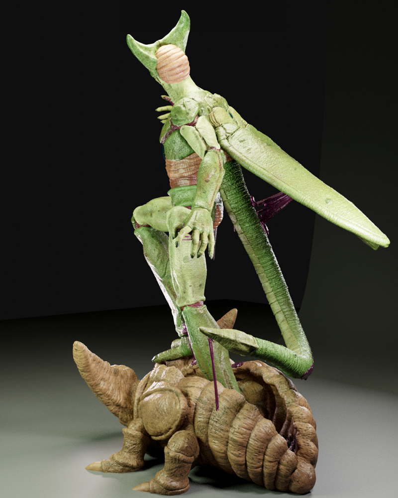 A dynamic sculpture of Cell, showcasing his menacing stance and bio-organic armor in striking detail.