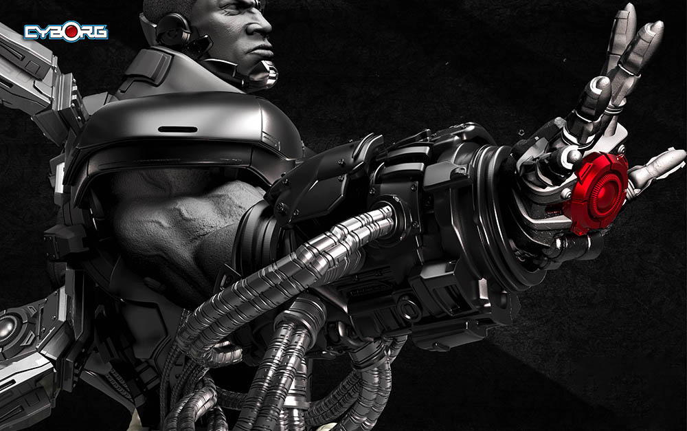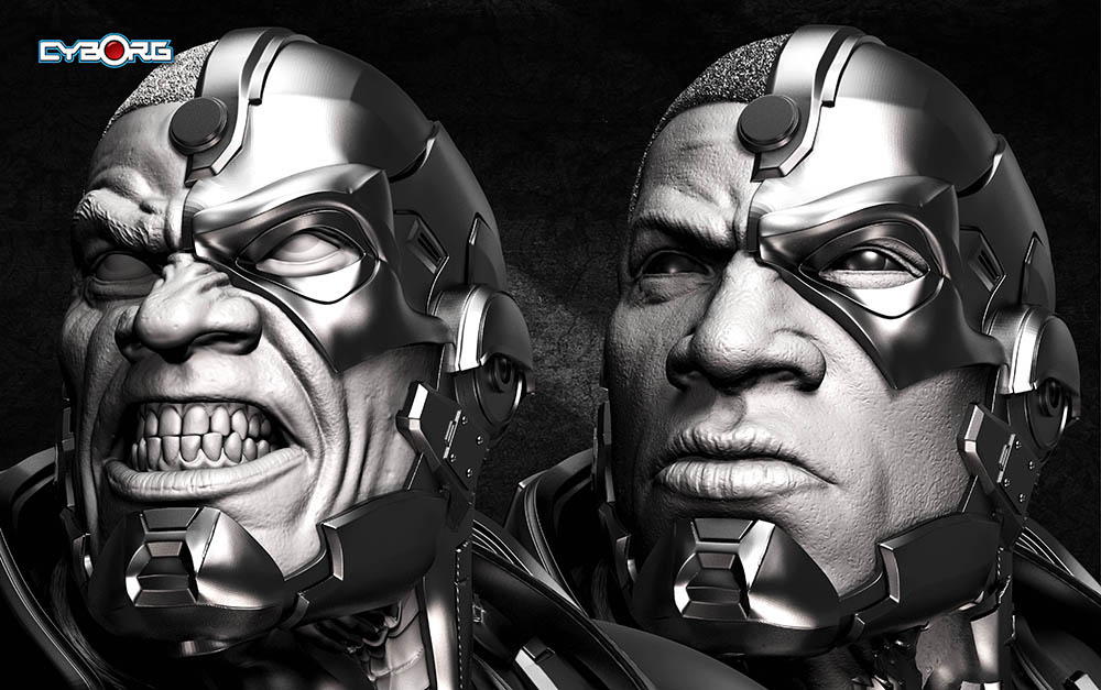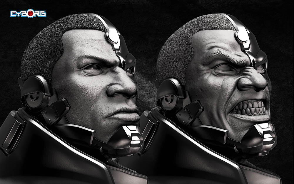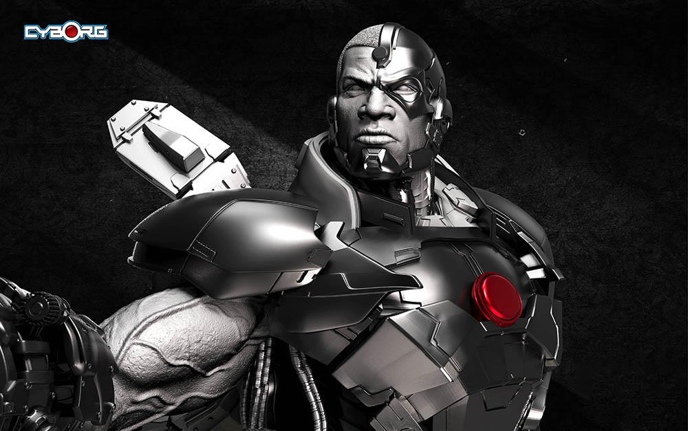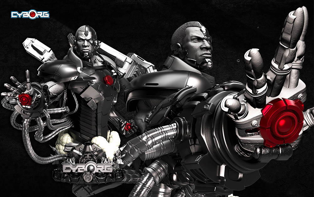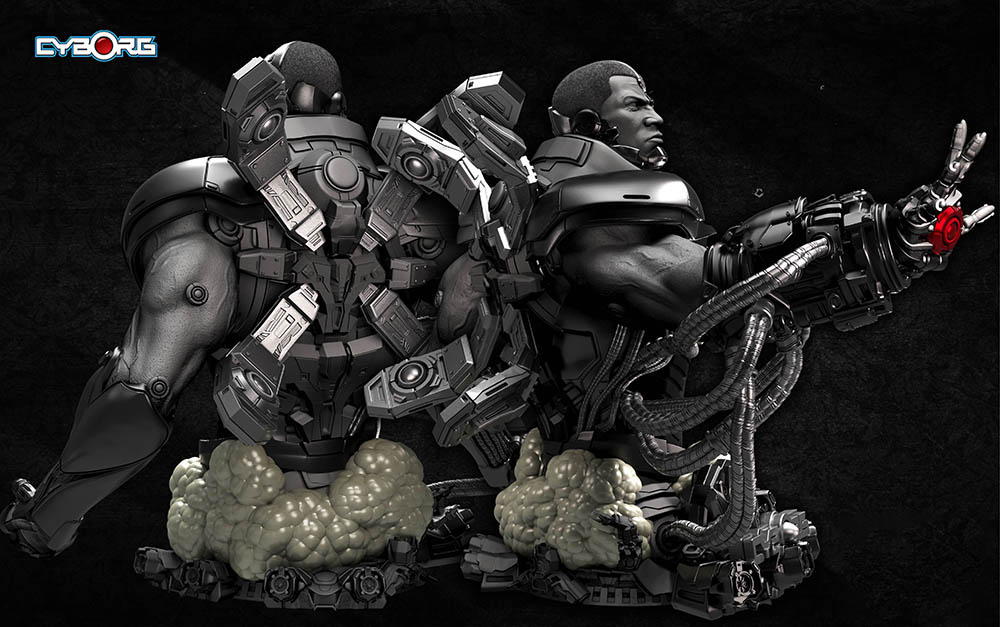 A figurine of a Cyborg bust, a character from the DC Comics universe, would be a detailed, three-dimensional representation of the upper part of the character, typically from the chest upwards.