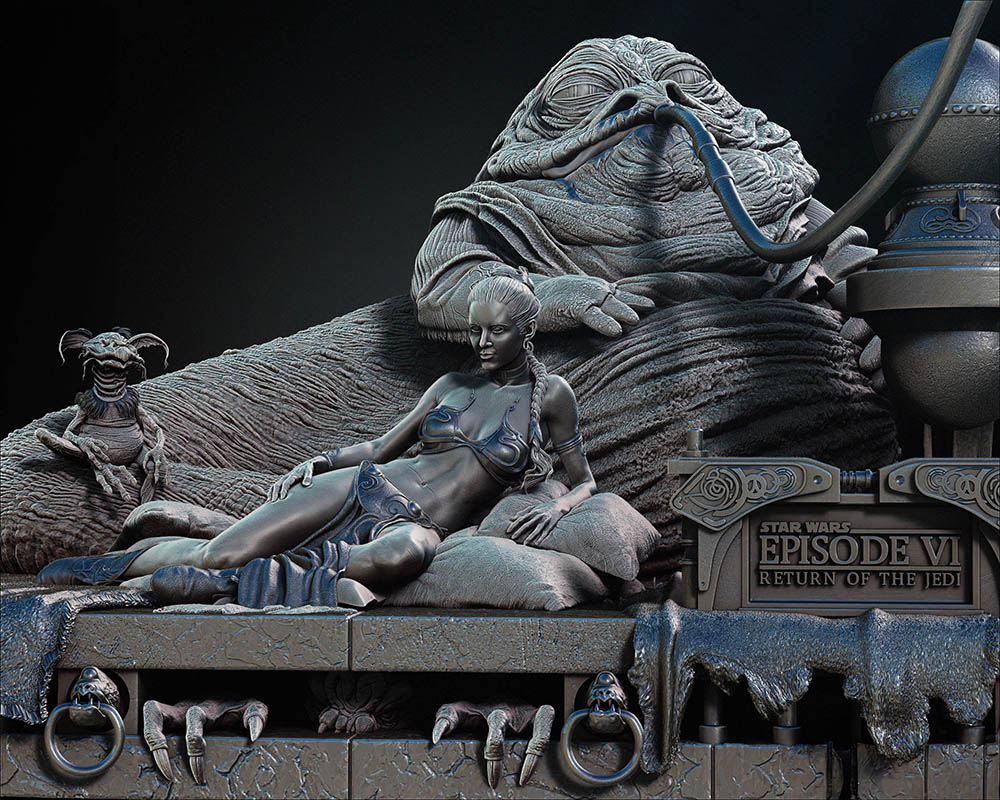 The Leia and Jabba Diorama figurine offers a captivating portrayal of a pivotal moment from Star Wars: Return of the Jedi, capturing the tension and drama between Princess Leia and the vile gangster Jabba the Hutt. Crafted with meticulous attention to detail and a sense of cinematic grandeur, this diorama captures the essence of the iconic scene with striking realism and emotion.