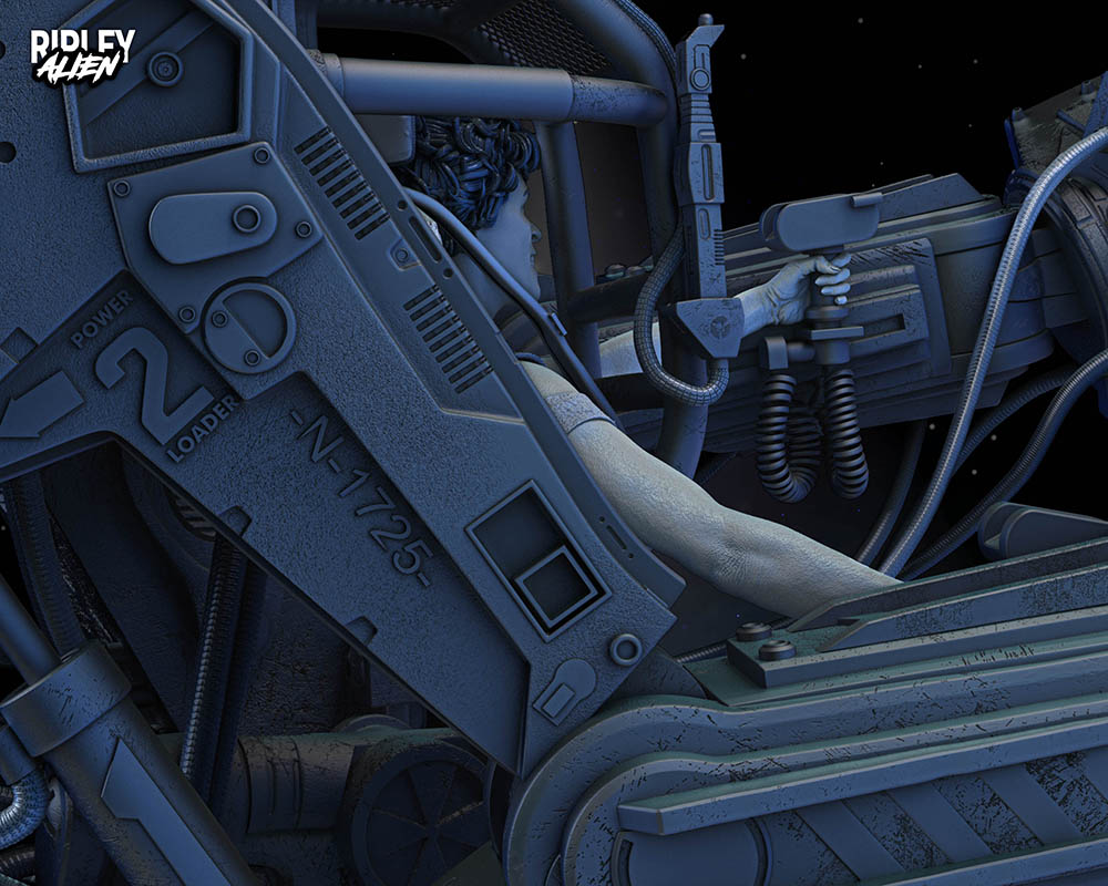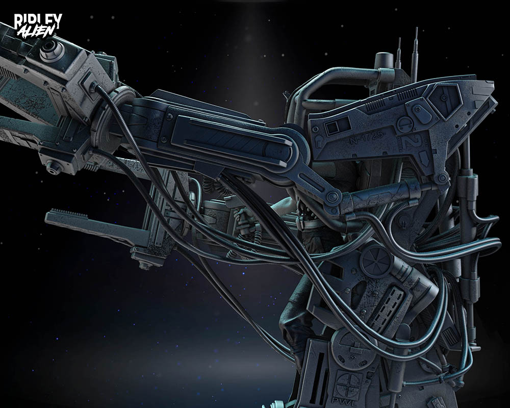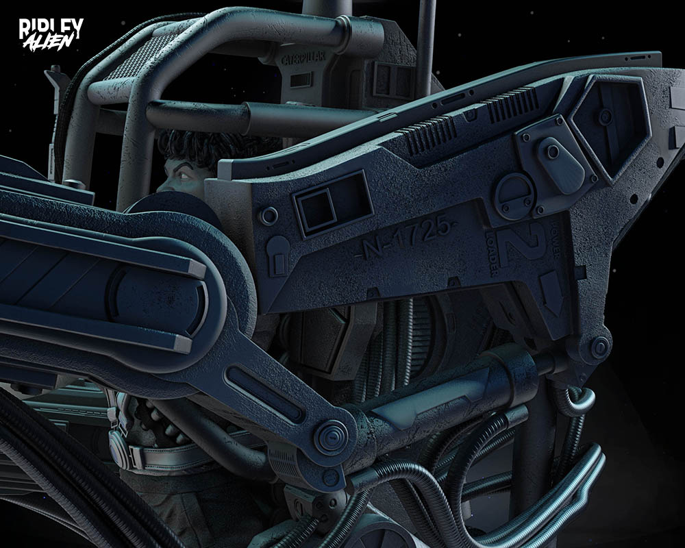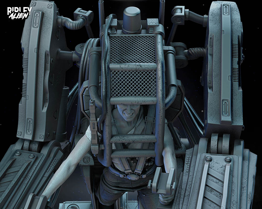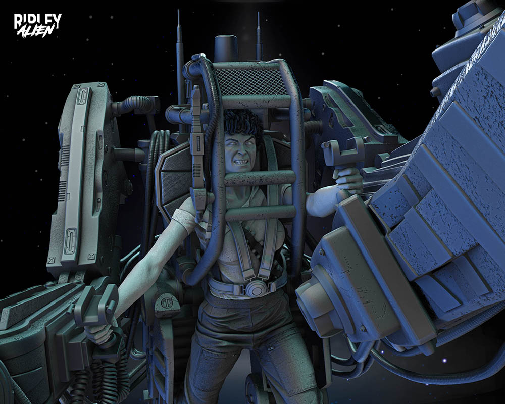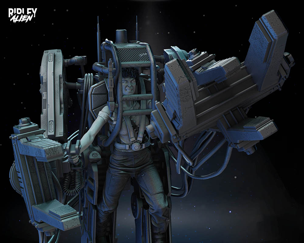 A figurine of a Power Loader and Ripley sculpture, based on the iconic scene from the movie Aliens, would be a detailed, three-dimensional representation of the character and machinery.