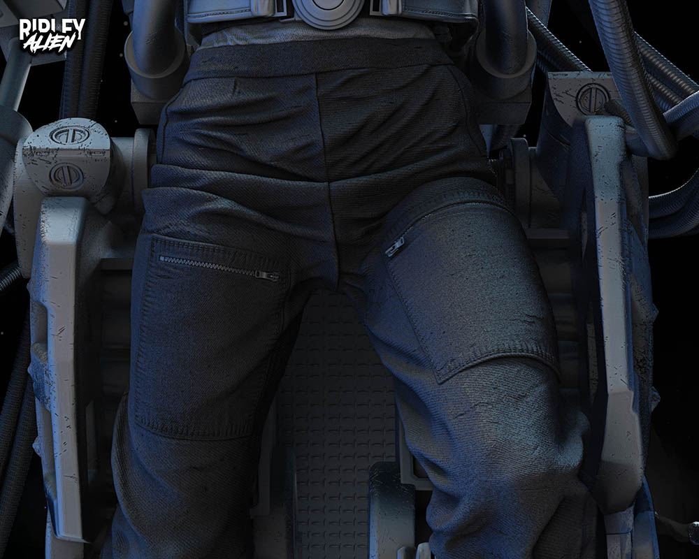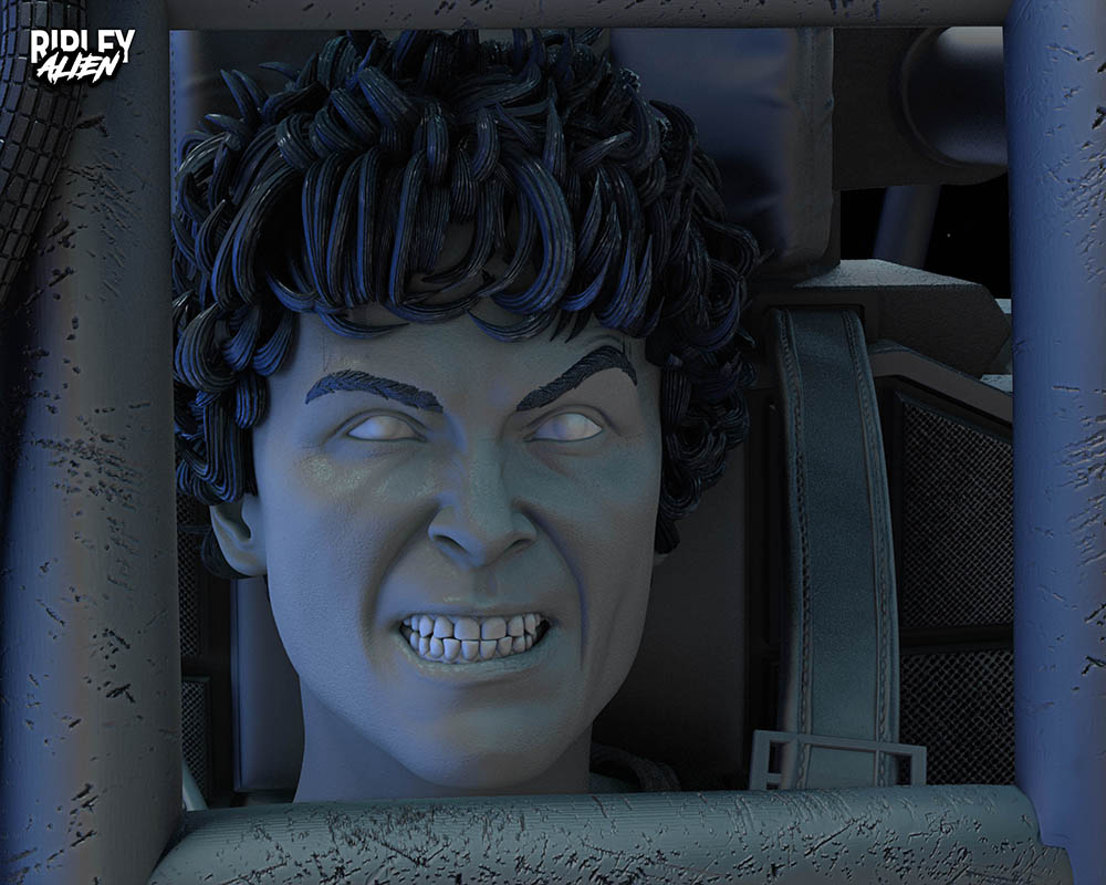 The sculpture would depict Ripley in her costume from this scene, which includes a flight suit. Her facial features and determined expression would be accurately represented.