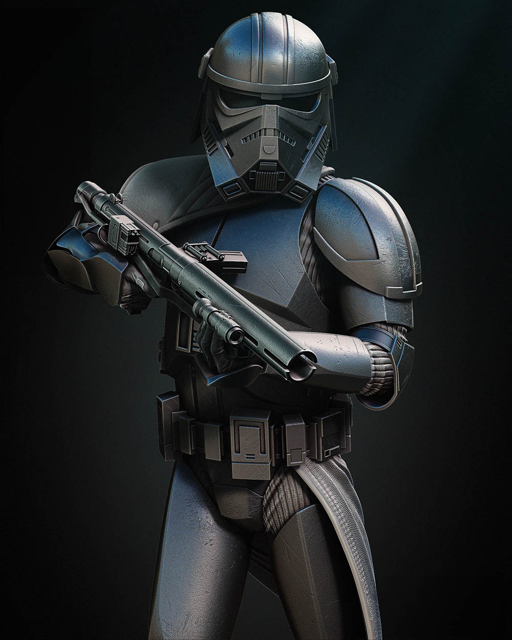 Creating a 3D print of a Purge Trooper sculpture, characters from the Star Wars universe, particularly in the video game Star Wars Jedi: Fallen Order.