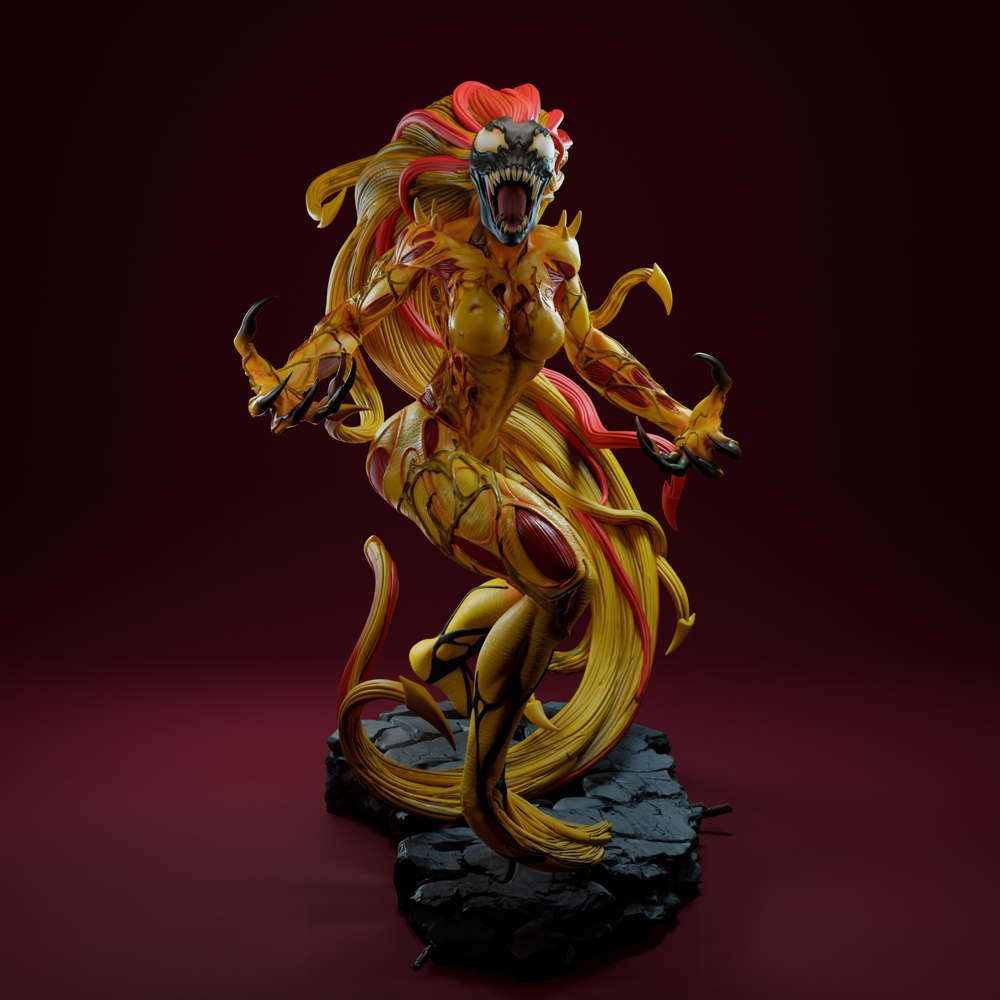 The Scream Sculpture is a striking collectible that brings the ferocious symbiote from Marvel’s universe to life. Sculpted in a dynamic, aggressive pose, Scream is depicted mid-attack, with flowing, tendril-like hair and sinewy limbs that convey motion, chaos, and deadly agility.