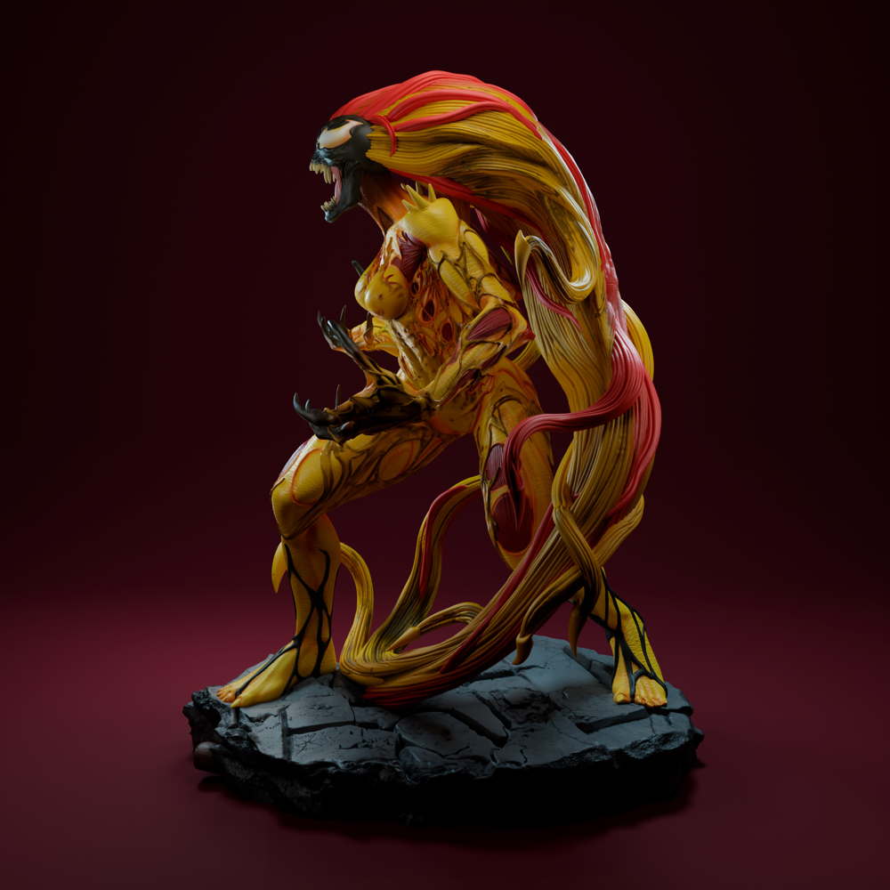 A menacing Scream sculpture, capturing the symbiote’s chaotic energy, sharp features, and terrifying presence in dynamic detail.